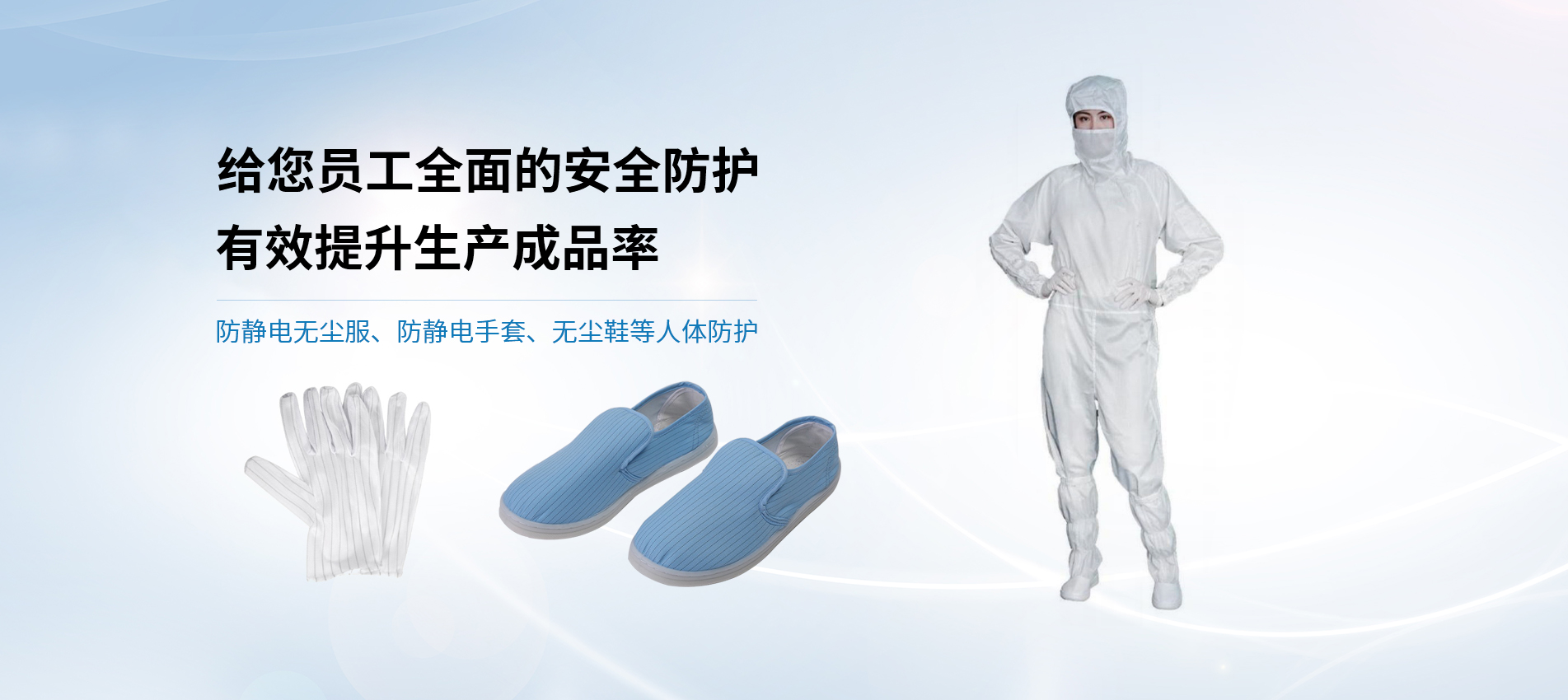 提供无尘车间对于人员造成的污染的管控,由于人员流动已成为无尘室最大的污染源,从头至脚的完全防护,隔离污染源保障环境不被影响。